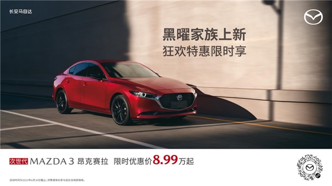 5月31日-6月3日,长安马自达MAZDA EZ-60领衔长安马自达全系车型亮相2025深圳粤港澳大湾区车展。继次世代MAZDA3昂克赛拉黑曜版、MAZDA CX-30黑曜版之后,长安马自达黑曜家族再添新成员,MAZDA CX-5黑曜版即将上新。同时,MAZDA EZ-6运动版将于本月初正式上市到店,演绎电感轿跑新势力。至高40,000元补贴、超长0息等硬核福利,多款新车型让你轻松解锁高品质出行生活方式。详情请咨询当地经销商。