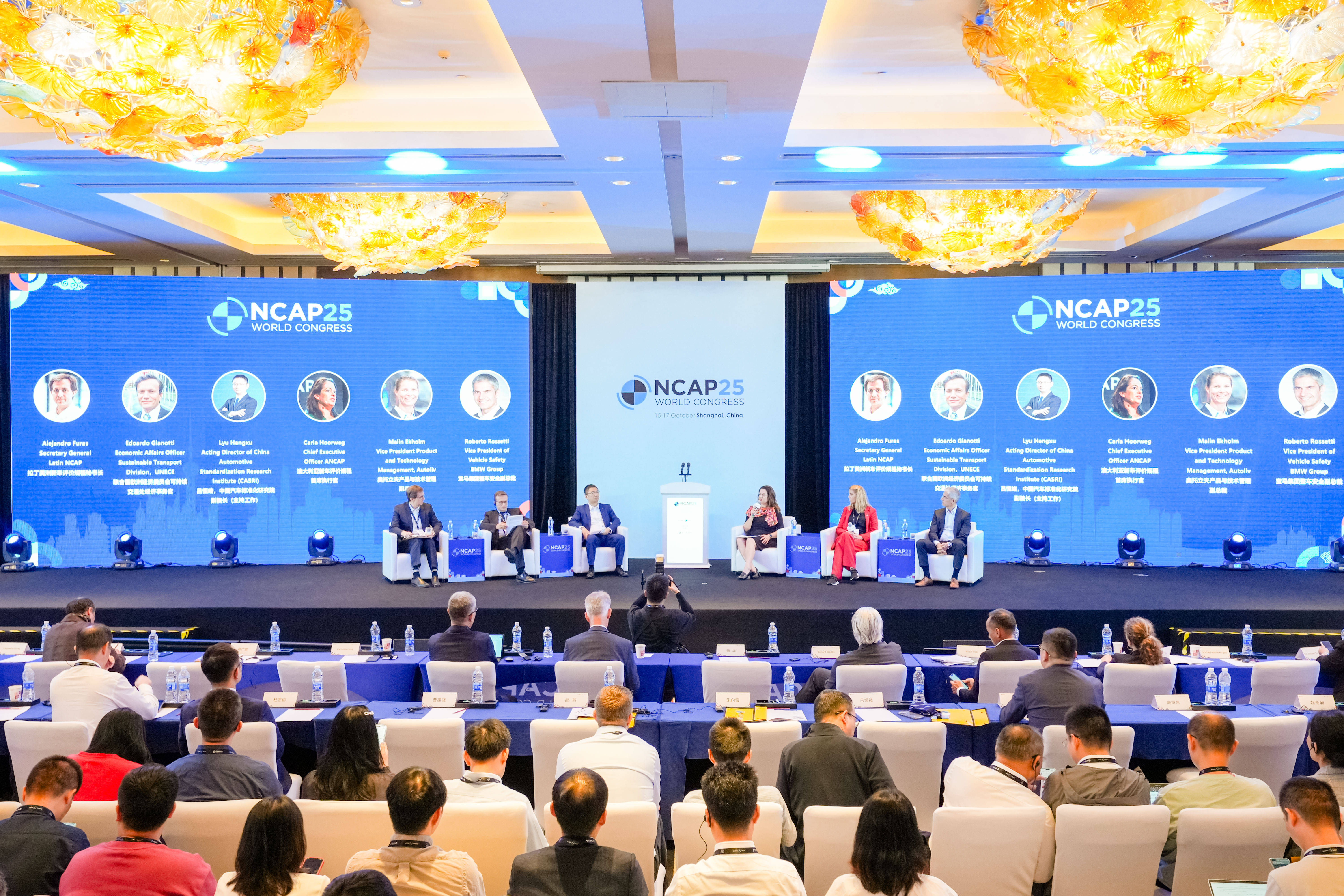 2025年10月15日,2025世界NCAP大会在中国上海拉开帷幕。本次大会由中汽中心与全球新车评价规程(Global NCAP)联合主办。中汽中心董事长安铁成、全球新车评价规程主席伊恩·卡梅伦作开幕主题演讲。来自联合国欧洲经济委员会、世界卫生组织,全球各NCAP机构,全球汽车整车及零部件企业等的高层代表,以及媒体代表共500余人出席。中国在汽车强国建设中再一次以推动全球汽车安全“领跑者”的身姿站在世界舞台中央。